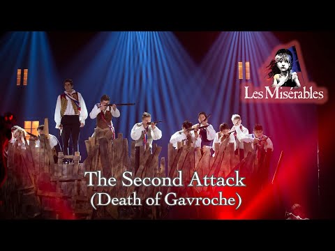 Les Miserables Live- The Second Attack (Death of Gavroche) - The Second Attack Death Of Gavroche - To see more of "Les Miserables," go to https://www.youtube.com/playlist?list=PLzvdeRjhZpVlmAR_rm_omD7vWC7m2PGRf ! The King's Academy, a National ...